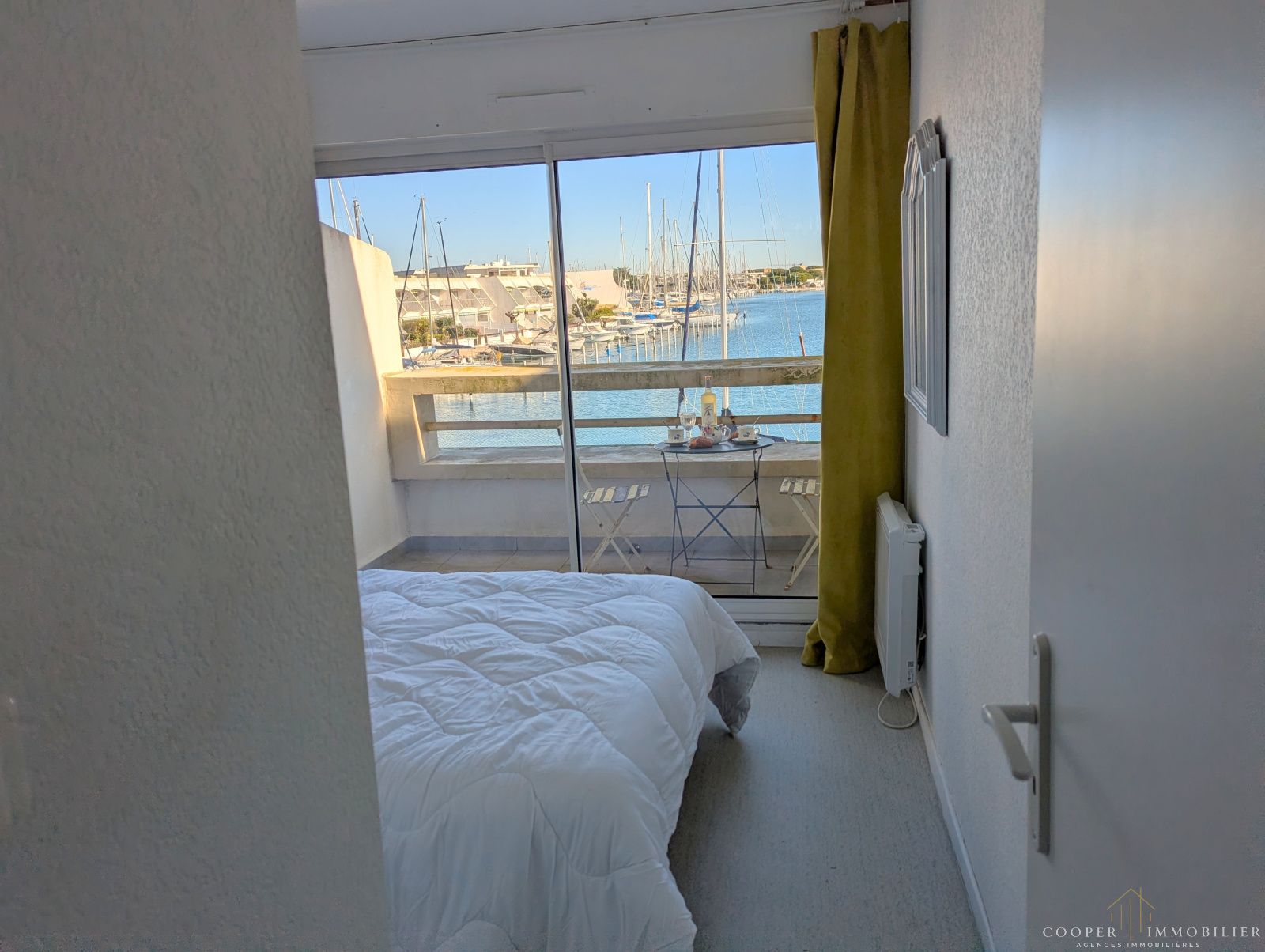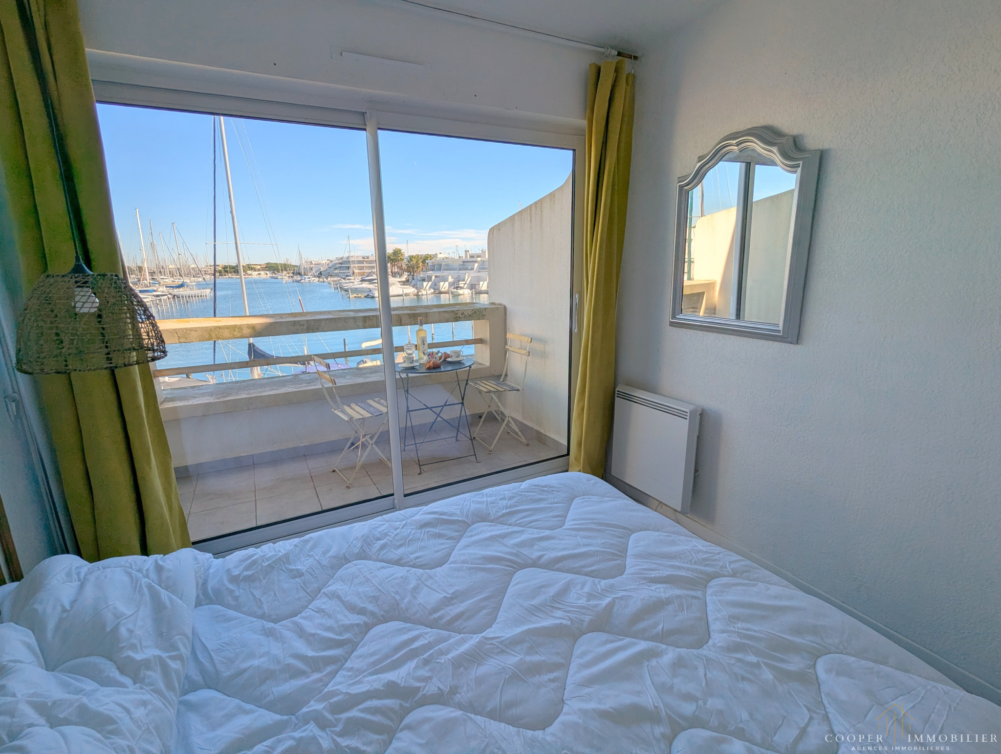 A découvrir absolument cette marina traversante avec ses deux ambiances particulières : côté Est, la chambre donne sur un balcon de 5 m² avec vue sur le plan d'eau et les marinas; côté Ouest, le salon avec son coin cuisine s'ouvre sur un balcon de 10 m² avec vue sur la mer. Le plus : en sortie de résidence, vous accédez directement à pied à la Plage Sud de Port Camargue, l'une des plus belles plages du Grau-du-roi, et au centre commercial avec ses nombreux commerces. La marina située au 2ème étage se compose de 2 niveaux : à l'entrée vous trouverez la chambre, le coin cabine, la salle d'eau et le WC séparé; puis par de petits escaliers, vous montez au grand salon avec son coin cuisine séparé et son balcon exposé Ouest où vous profiterez de couchers de soleil fabuleux. Place de parking privative et appontement 3m x 12m.